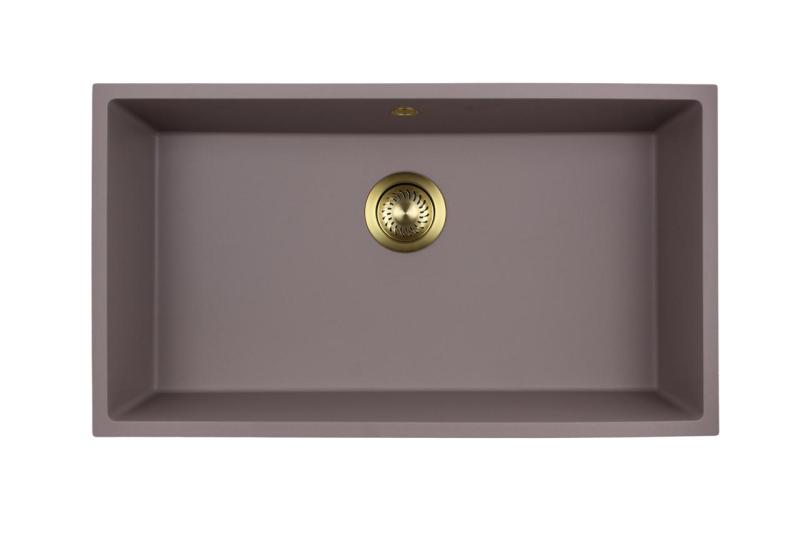Een unieke gouden plug voegt een vleugje glamour toe aan het geheel, waardoor uw keuken een echte blikvanger wordt. Ondanks zijn grootte en veelzijdigheid, bevat de spoelbak geen afdruipgedeelte, wat bijdraagt aan een minimalistische en moderne look.